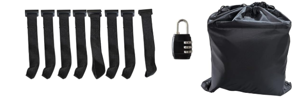 Bantalan pelindung, kait pintu, kunci, tas serut.